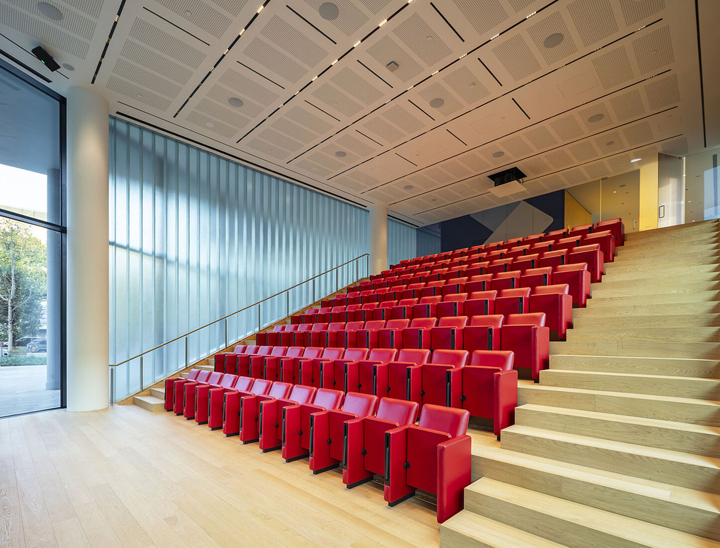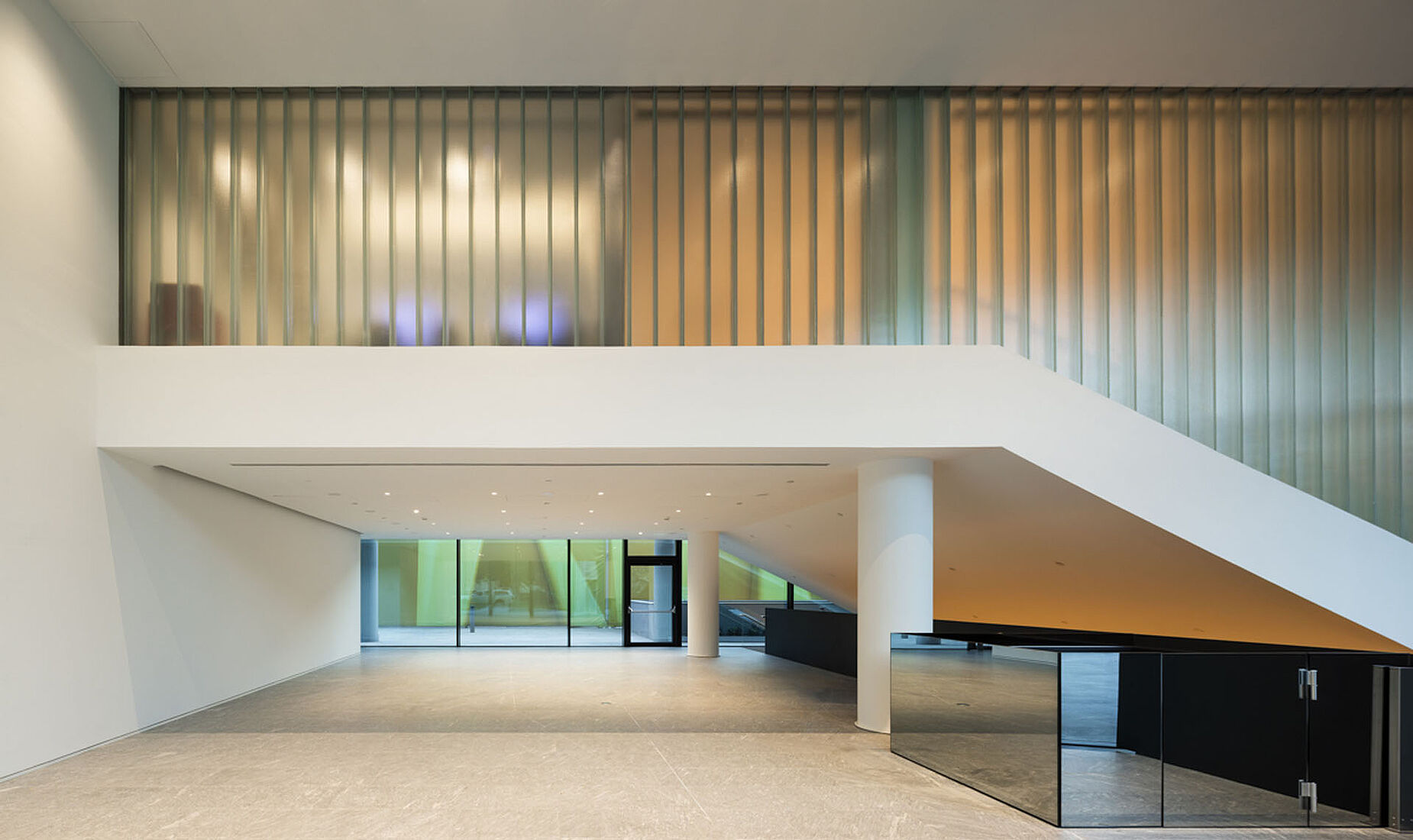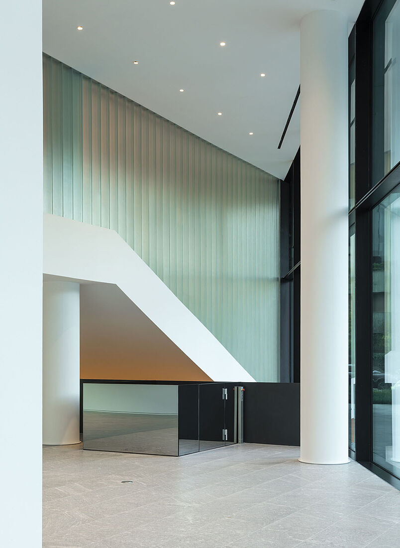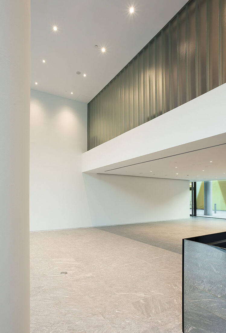 The building is not only an office building, but also an urban project that gives the city space a new public piazza and cultural uses. Its architectural heart is the spacious atrium, which is designed as a vertical, spatially connecting interior. It links the BFF Gallery, a publicly accessible exhibition space with works of modern and contemporary art, with the office floors and creates a clear spatial orientation. The atrium functions as the social and atmospheric centre of the building.