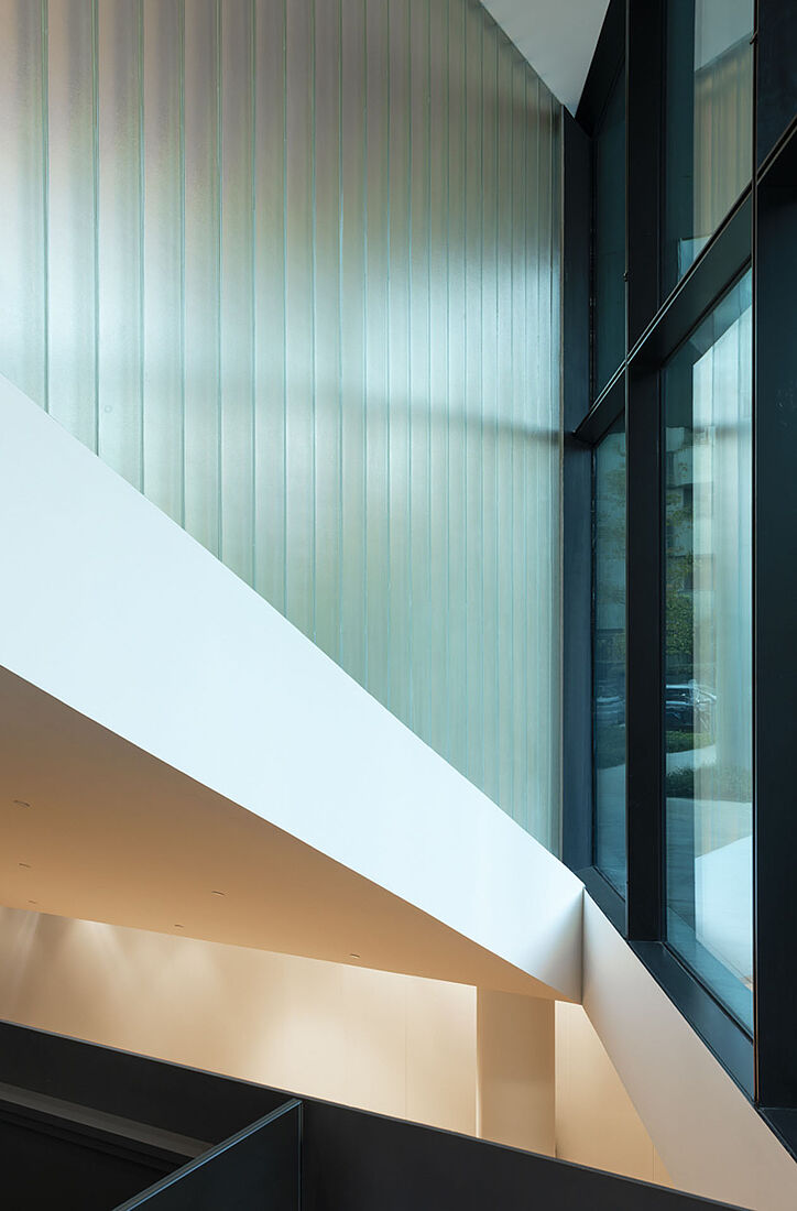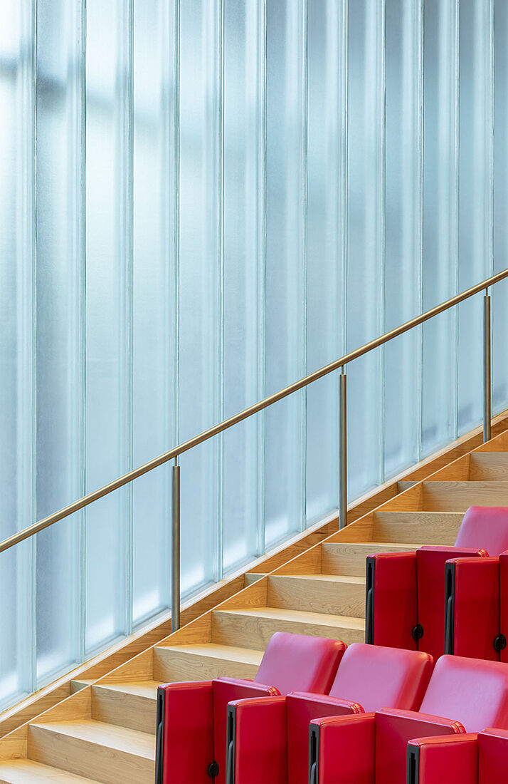 The use of LINIT©EcoGlass profiled glass is a defining feature of the atrium's design. It allows for even, diffuse daylighting without allowing direct views into the building. This creates a bright, calm lighting atmosphere that lends the space depth and generosity while maintaining privacy. In addition to its spatial effect, the glass also fulfils functional requirements: it contributes to the energy efficiency of the building and, thanks to its laminated design, is very robust and durable, thus fitting in with the sustainable overall concept of Casa BFF. In combination with the clear supporting structure and the high ceilings, an atrium has been created that, as a timeless, light-filled interior, defines the character of the entire building.